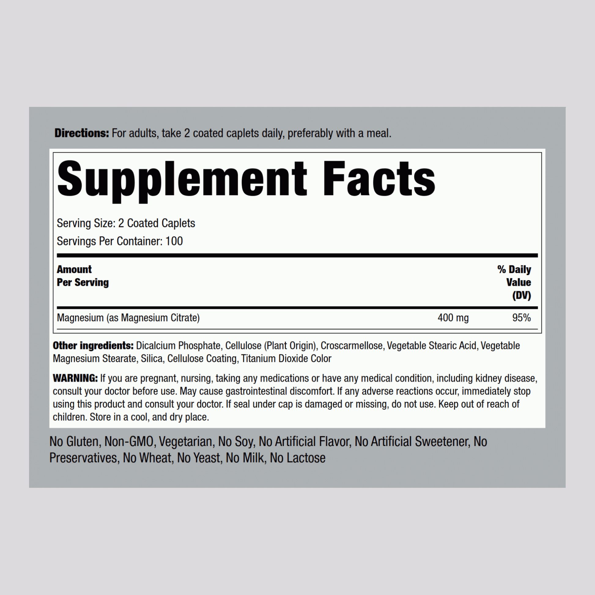 Magnesium Citrate, 400 mg (per serving), 200 Coated Caplets