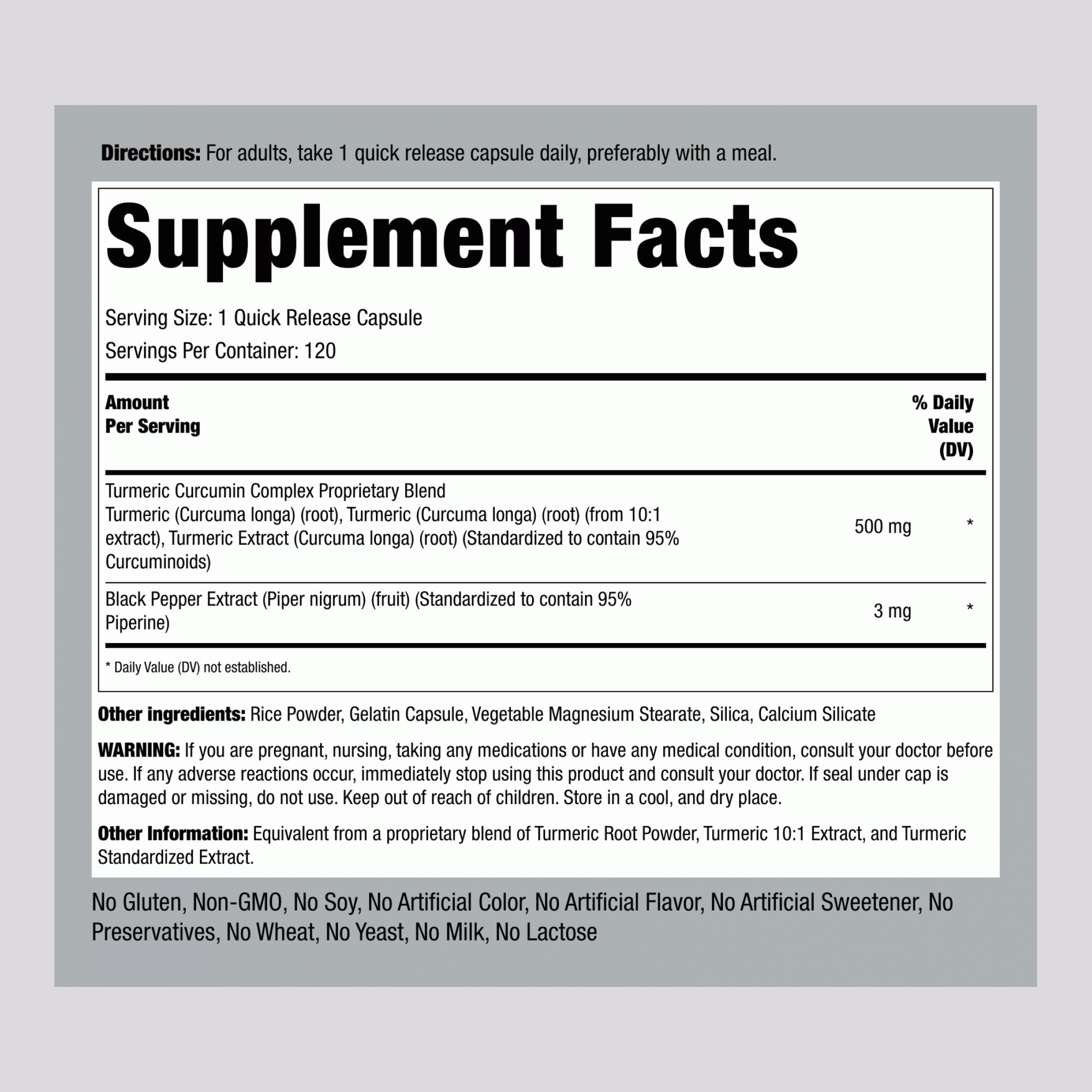 Standardized Turmeric Curcumin Complex, 500 mg, 120 Quick Release Capsules