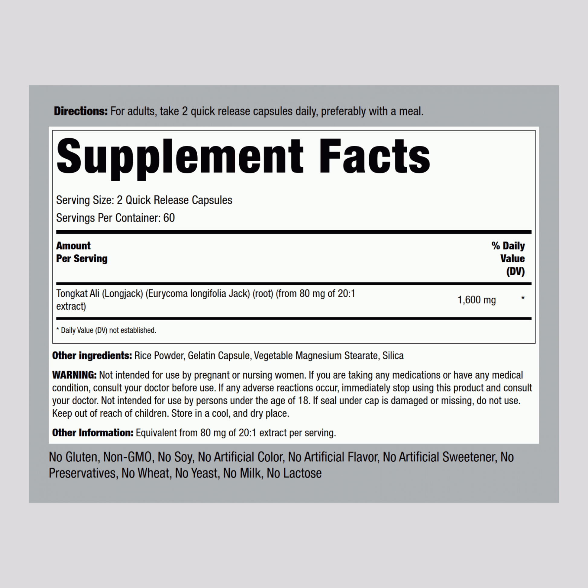 Tongkat Ali Long Jack, 1600 mg (per serving), 120 Quick Release Capsules